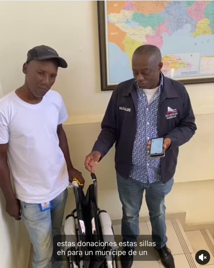El dia de hoy nuestro alcalde : Miguel Valera , con la ayuda de Nizao Diaspora Internacional y Zulay Mateo hara entrega de esta silla de ruedas a uno de nuestros ciudadanos de la comunidad de sabana palenque , ya que necesita esta ayuda de inmediato , el compromiso de nuestro alcalde es velar por el bienestar de todos los ciudadanos y garantizar un mejor funcionamiento para todos